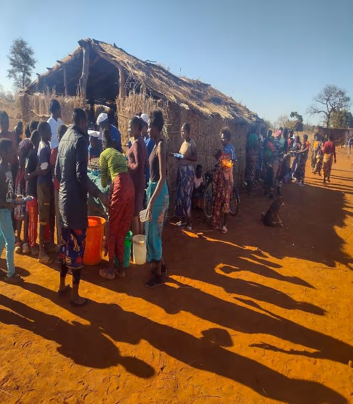 Wir freuen uns, dass wir unser Ernährungsprogramm auf das Dorf Senkobo, rund 25 Kilometer von Livingstone entfernt, ausweiten konnten. Dort wurden 200 Menschen mit nahrhaften Mahlzeiten versorgt. Ziel des Kwathu-Feeding-Programms ist es, Familien und Gemeinschaften, die von Ernährungsunsicherheit betroffen sind, zumindest eine Mahlzeit am Tag zu ermöglichen.